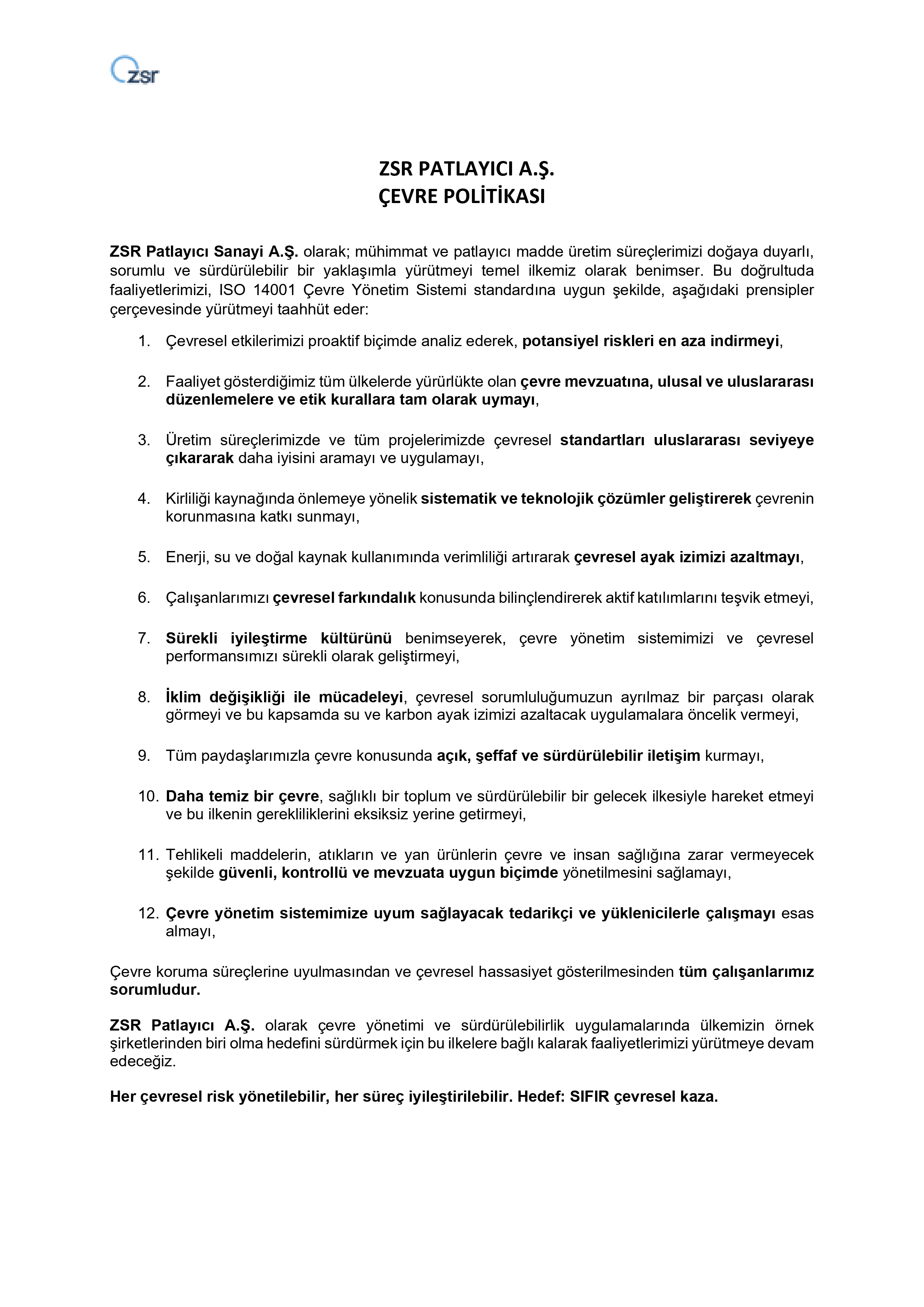Çevre Politikamız